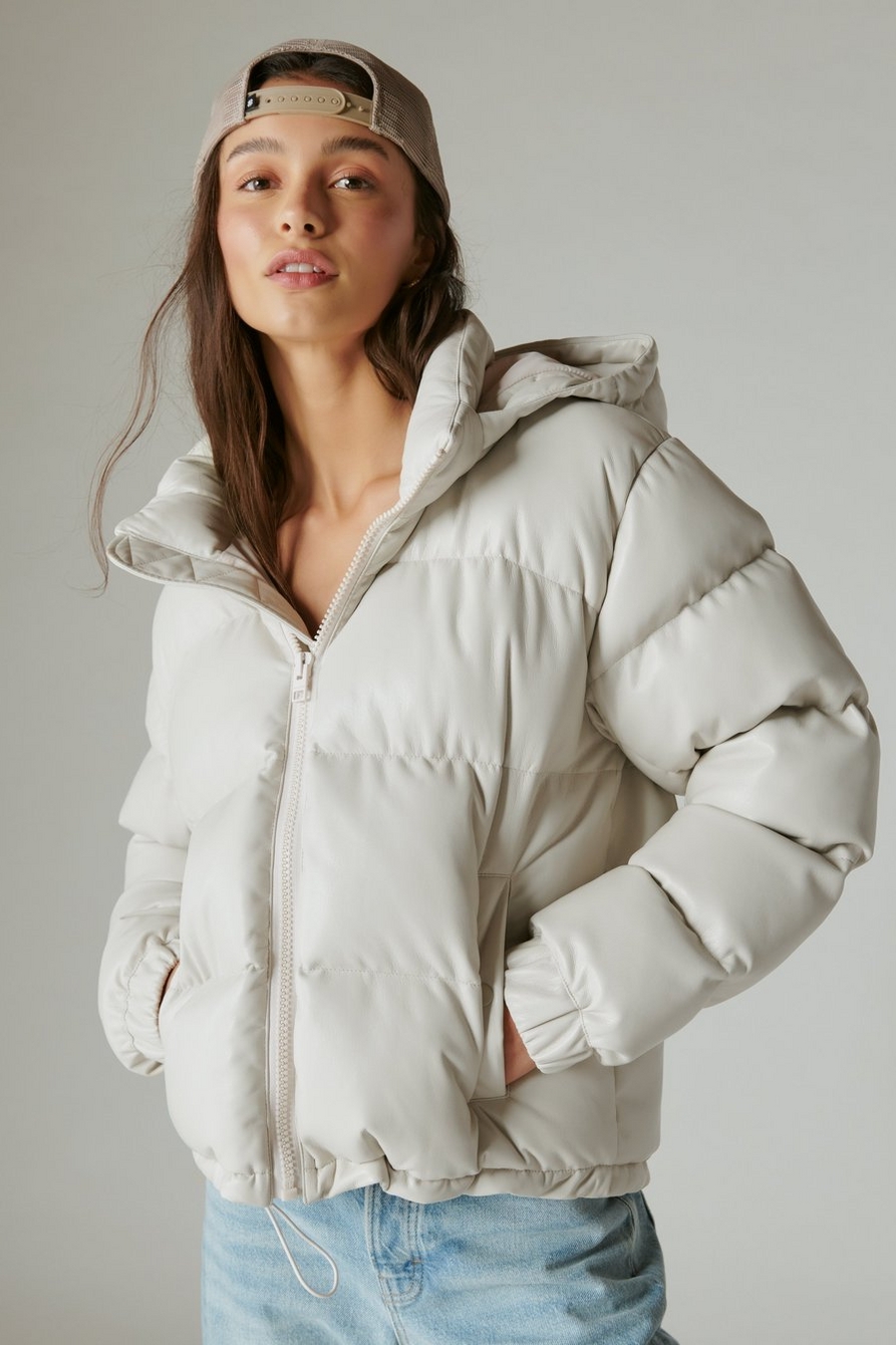 Combat the cooler temps (but make it cute) with this faux leather puffer jacket. Its oversized fit and classic puffer style make a must-have layering piece to any ��fit.