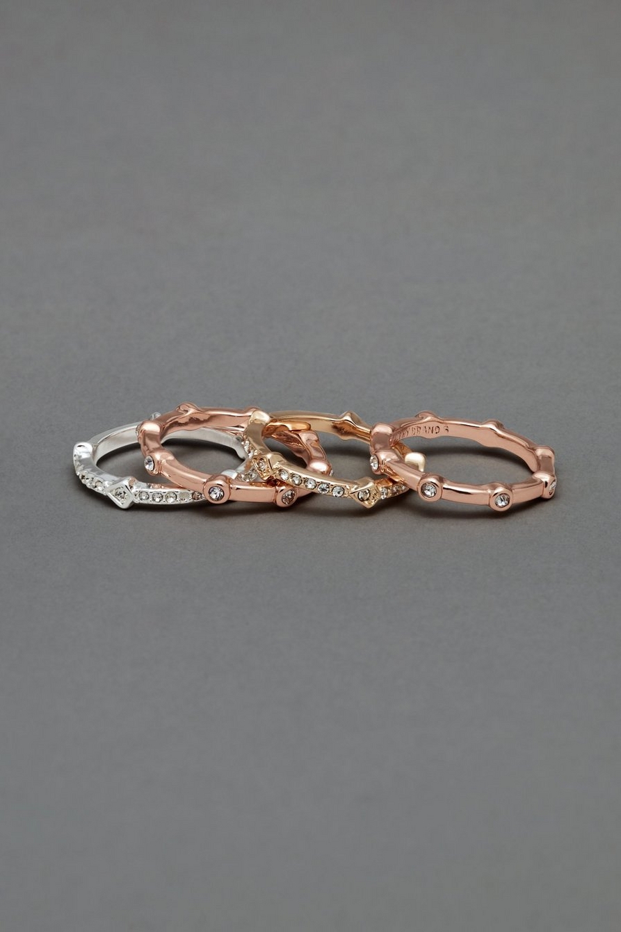 Accessorize dozens of everyday and special looks with this so pretty ring stack. Polished in shiny rose gold-tone metal, this all-in-one stack shows off various textures and designs with pretty pave details for an extra special and sparkly touch.
